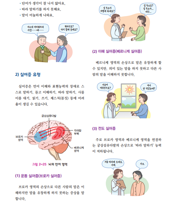 주로 언어를 담당하는 좌측 뇌 부위에 뇌졸중이 발생하게 되면 다른 사람의 말을 이해하는 능력이나 자신의 생각을 말로써 표현하는 능력에 장애를 갖게 되는 실어증이 발생하게 됩니다.