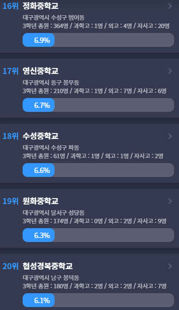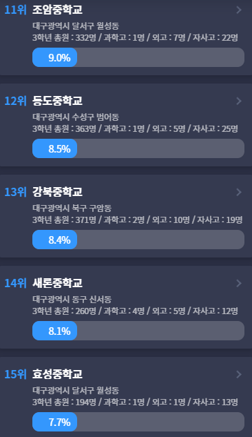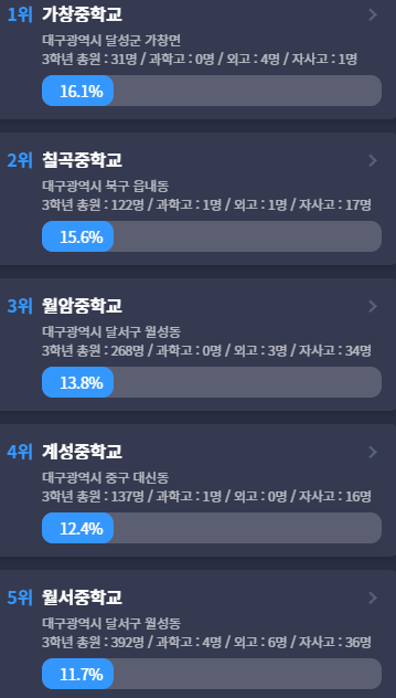데이터상 달서구 월성동 중학교가 우수한 것 같네요.