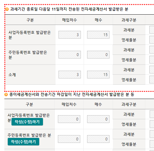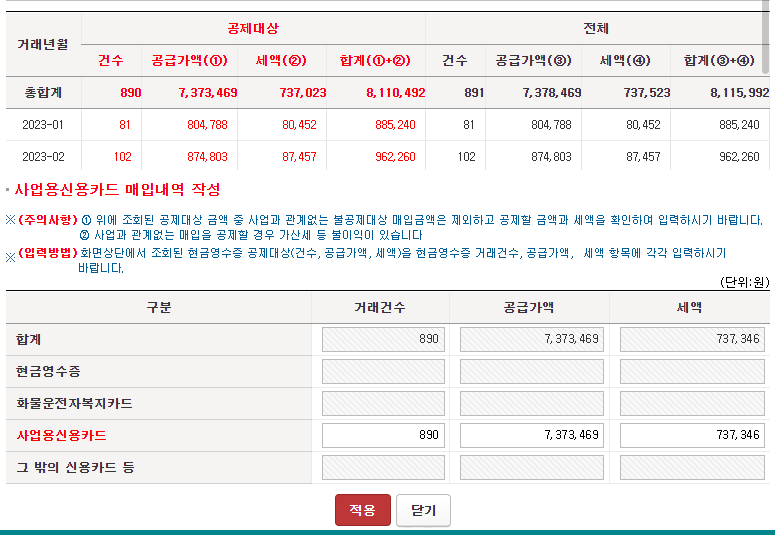 친절하게도 상반기 합계 내역을 알려주고 있고, 공급가액과 세액을 합한 총금액을 입력해 줍니다.