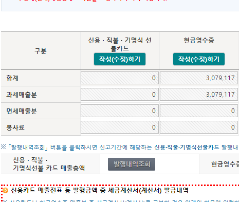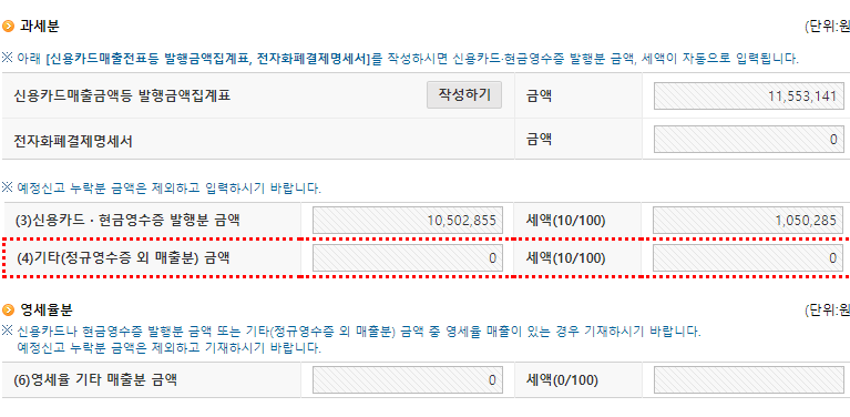 현금영수증과 똑같이 매출금액을 작성해 줍니다.