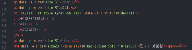 다시 HTML에서 기본모드로 넘어오면 자동 저장이 됩니다.