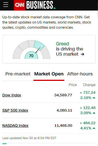 | 미 나스닥 하락. 주가지수 및 주요이슈[한국시간11/28(월)] (0) | 2022.11.29 |